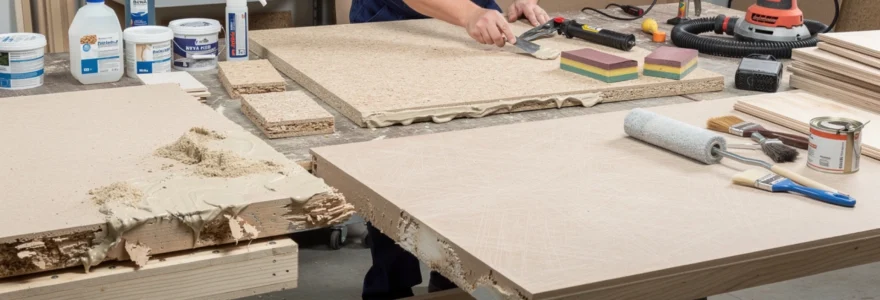 Le bois aggloméré, également appelé panneau de particules, est omniprésent dans nos intérieurs : meubles de cuisine, bibliothèques, plans de travail ou encore éléments de rangement. Ce matériau composite, économique et polyvalent, présente néanmoins une vulnérabilité majeure face à l’humidité et aux chocs. Lorsqu’un panneau d’aggloméré subit des dommages, nombreux sont ceux qui envisagent immédiatement son remplacement complet. Pourtant, dans la majorité des cas, une réparation ciblée et méthodique peut redonner vie à votre mobilier. Que vous soyez confronté à un gonflement causé par une infiltration d’eau, à un arrachement de charnière ou à une fissure disgracieuse, des solutions techniques existent pour restaurer l’intégrité structurelle et l’esthétique de vos panneaux. Cette restauration demande certes une compréhension précise des matériaux et des techniques appropriées, mais elle reste à la portée de tout bricoleur méthodique.