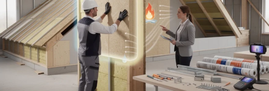 Concrètement, cela peut se traduire par l’utilisation de laine de roche incombustible autour des traversées de conduits, complétée par de la laine de bois sur le reste de la surface. Cette approche permet de bénéficier des qualités hygroscopiques et du déphasage de la laine de bois, tout en respectant les prescriptions de sécurité incendie aux points sensibles. Comme toujours, le respect des Avis Techniques, des DTU et des notices fabricants reste indispensable pour garantir la conformité du système.